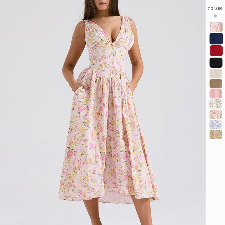 Stylish Floral Print V-Neck Swing Dress🌺Buy 2 Free Shipping